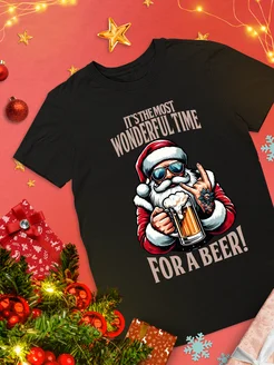 Футболка Дед Мороз с пивом Новый Год Рождество Праздник