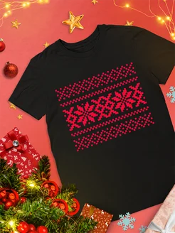Футболка Вязаный узор Орнамент Пиксельный Новый год
