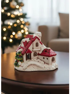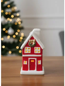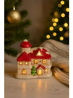Статуэтка новогодняя под елку "Домик" (подсветка, 2xLR44)