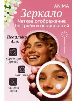 Зеркало карманное для макияжа с подсветкой и увеличением
