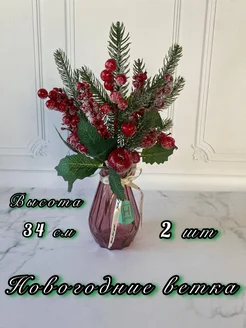 ветки новогодние с шишками и ягодами искусственные