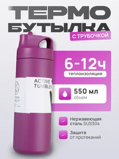 Термобутылка спортивная для воды чая и кофе с трубочкой