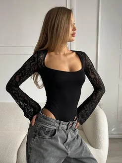 Боди skims кружевное с длинным рукавом