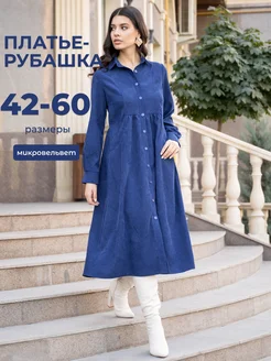 Вельветовое платье рубашка повседневное