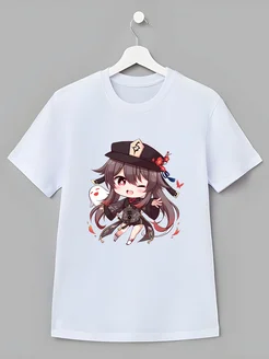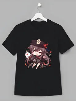 Детская футболка Ху Тао Genshin Impact аниме чиби мерч