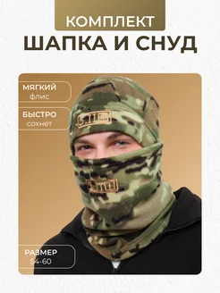Комплект шапка и шарф флисовый тактический снуд спортивный