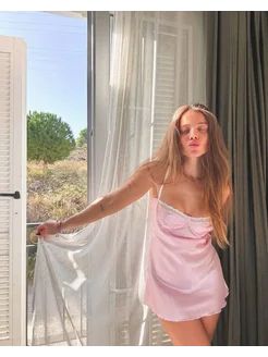 Ночная сорочка шелковая ночнушка мини платье комбинация