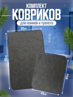 Коврик для ванной и туалета противоскользящий набор 2 шт