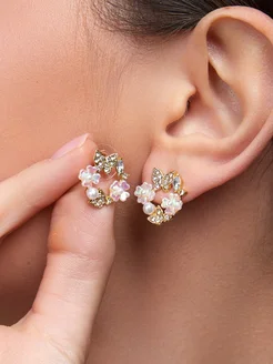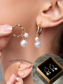 Серьги жемчуг кольца висячие золотистые бижутерия