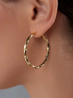 Серьги кольца большие конго золотистые бижутерия