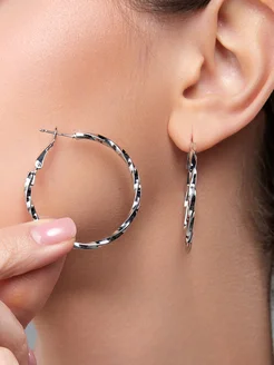 Серьги кольца большие конго серебристые бижутерия