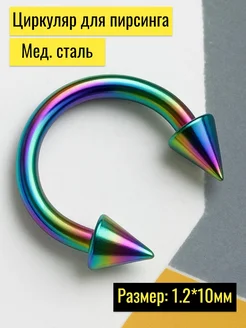 Циркуляр для пирсинга (1.2мм на 10мм) Радужный с шипиками