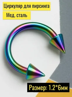 Циркуляр для пирсинга (1.2мм на 6мм) Радужный с шипиками