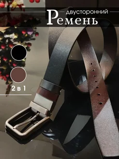 Ремень широкий кожаный с двумя язычками для платьев и брюк