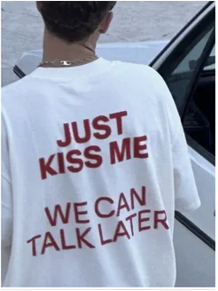 Футболка оверсайз принт надпись Just kiss me
