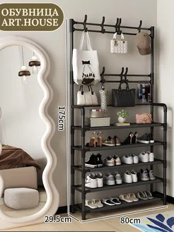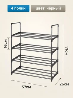 Обувница 71х57х26, с 4 полками, металлическая, черная