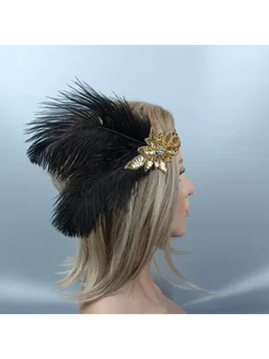 Карнавальный ободок повязка Гэтсби с пером на голову