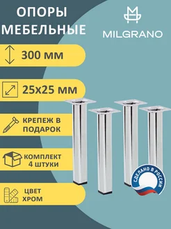 Ножки мебельные квадратные 300 мм, 4 шт. Хром