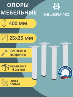 Ножки мебельные квадратные 4 шт, 400 мм. Цвет белый
