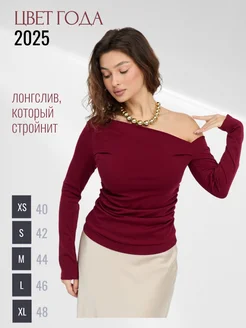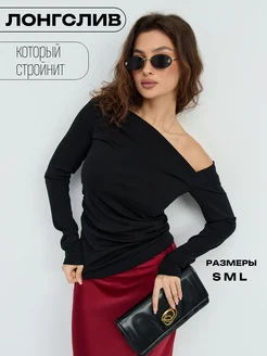 Лонгслив с открытыми плечами вечерний с драпировкой