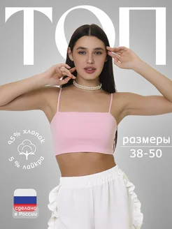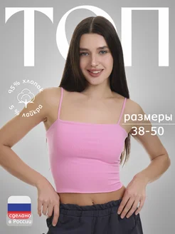 Летний топ женский ярко-розовый на бретелях удлиненный