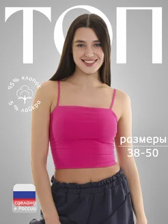 Летний топ женский фуксия на тонких бретелях удлиненный