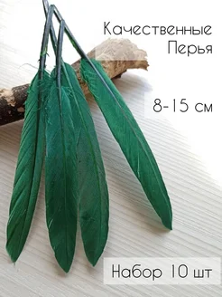 Гусиные перья для рукоделия 8-15 см 10 шт Изумруд