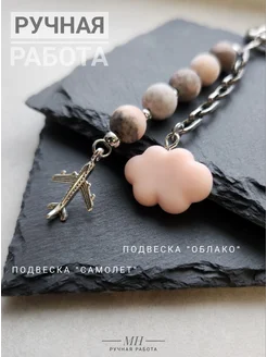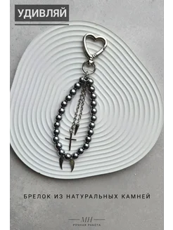 Брелок обвес на сумку из натуральных камней гематит и оникс