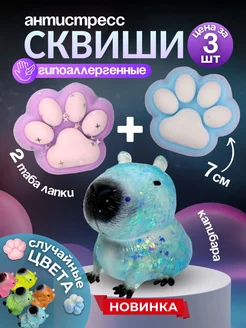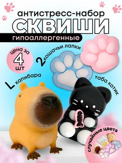 Набор сквишей антистресс Капибара Котик 2 таба лапки