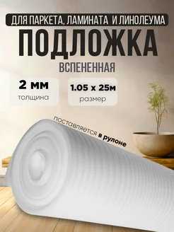 Подложка вспененная под ламинат толщина 2мм, размер 1,05х15м