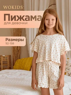 Пижама детская с шортами летняя в цветочек домашняя