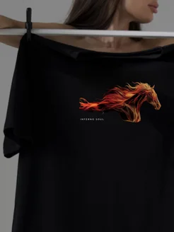 Футболка с огненной лошадью и надписью «Inferno soul»