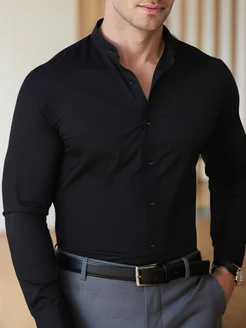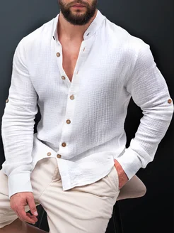 Рубашка муслиновая летняя с длинным рукавом воротник стойка