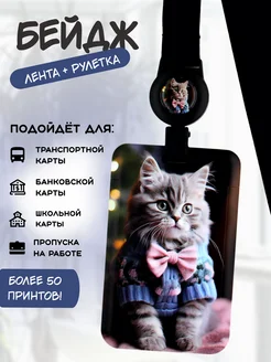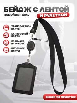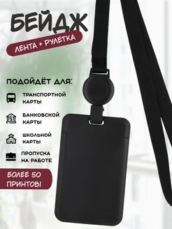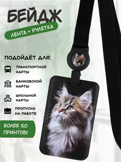 Бейдж чехол вертикальный для пропуска с рулеткой на ленте