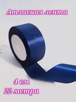 Лента атласная 4 см темно-синяя упаковочная для рукоделия