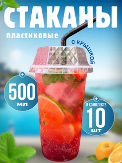 Одноразовые стаканы с купольной крышкой для коктейлей 10 шт
