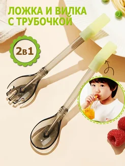 Детская силиконовая ложка и вилка трубочки многоразовые