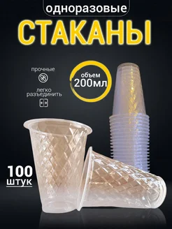 Стаканы одноразовые пластиковые 200 мл