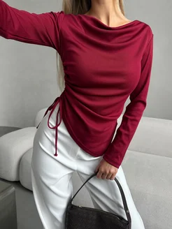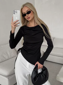 Лонгслив облегающий с рукавом клеш и асимметричным низом