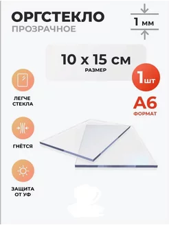 Оргстекло Монолитный поликарбонат прозрачное 10х15см 1мм А6