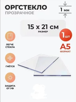 Оргстекло Монолитный поликарбонат прозрачное 15х21см 1мм А5