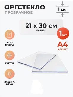 Оргстекло Монолитный поликарбонат прозрачное 21х30см 1мм А4