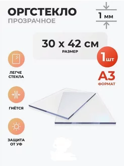 Оргстекло Монолитный поликарбонат прозрачное 30х42см 1мм А3