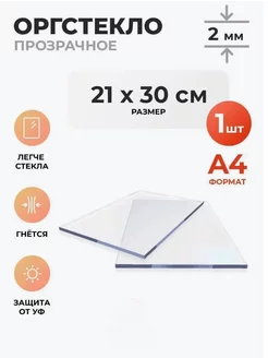 Оргстекло Монолитный поликарбонат прозрачное 21х30см 2мм А4
