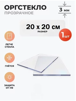 Оргстекло Монолитный поликарбонат прозрачное 20х20см 3мм