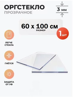 Оргстекло Монолитный поликарбонат прозрачное 60х100см 3мм