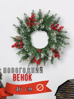 Венок новогодний с ягодами и заснеженными ветками 46 см
