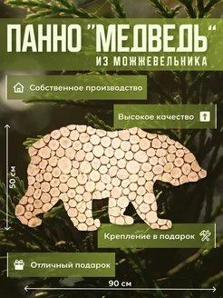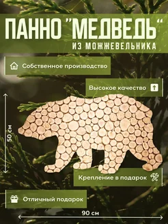 Панно из можжевельника для бани Медведь (повернут влево)