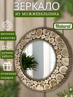 Зеркало для бани круглое из можжевельника