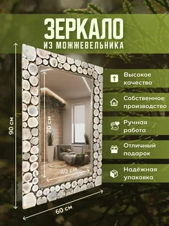 Зеркало для бани из можжевельника 90х60 см